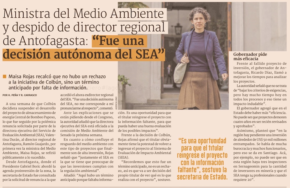 Ahora en DF | Ministra Rojas sobre despido de director regional de Antofagasta por proyecto de Colbún: "fue una decisión autónoma del SEA" - (DF Online)
