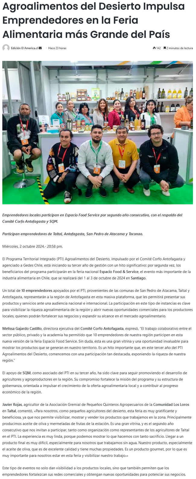 10 emprendedores de San Pedro, Antofagasta y Taltal en feria nacional Espacio Food & Service - (soycalama)
