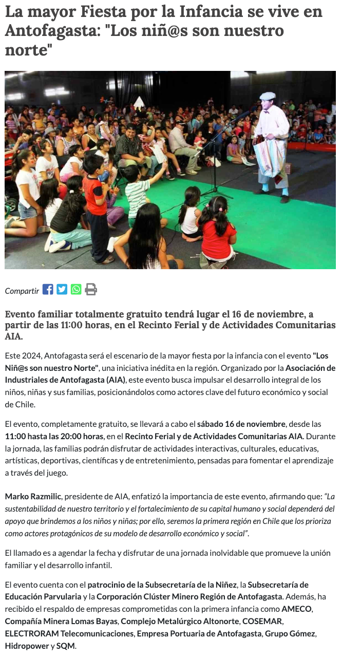 La mayor Fiesta por la Infancia se vive en Antofagasta: "Los niñ@s son nuestro norte" - (cualestuhuella.cl)