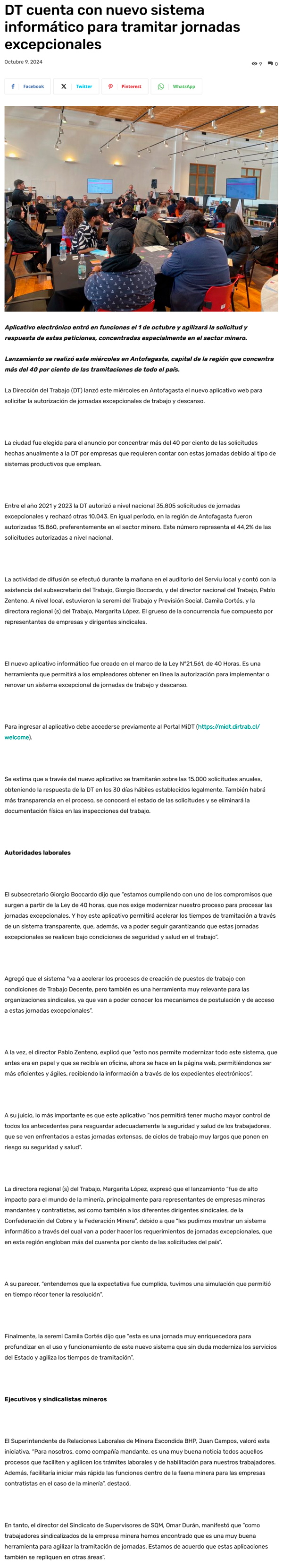 DT crea nuevo sistema electrónico para tramitar jornadas excepcionales - (reporteminero)
