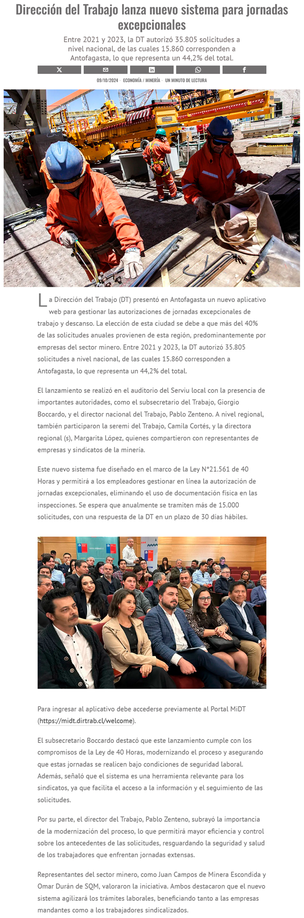 En Antofagasta fue lanzado el nuevo sistema de tramitación de jornadas excepcionales de trabajo - (madero.cl)