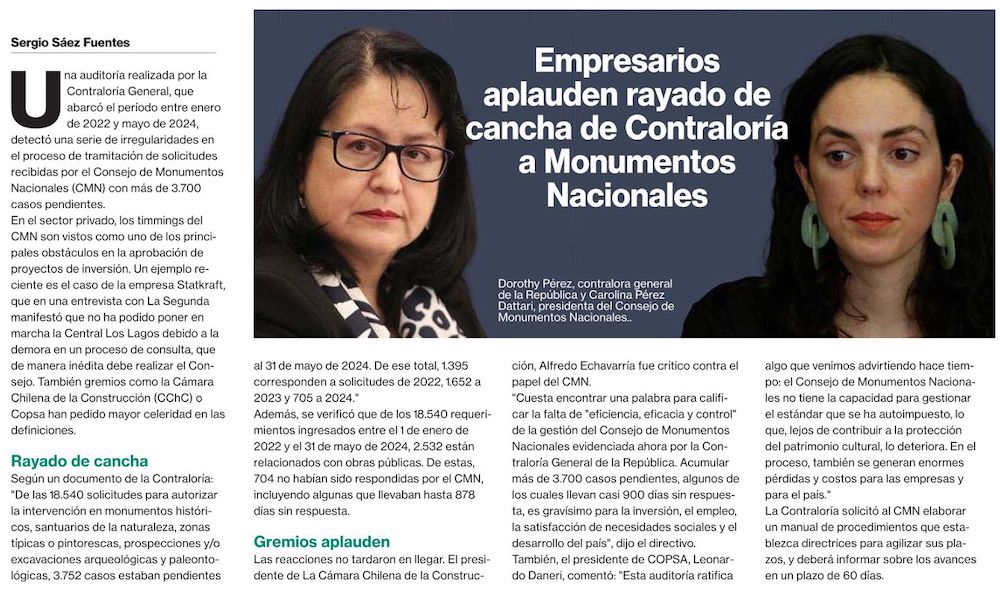 Contraloría detecta solicitudes al Consejo de Monumentos Nacional es que llevan casi 900 días sin respuesta - (Diario Financiero)