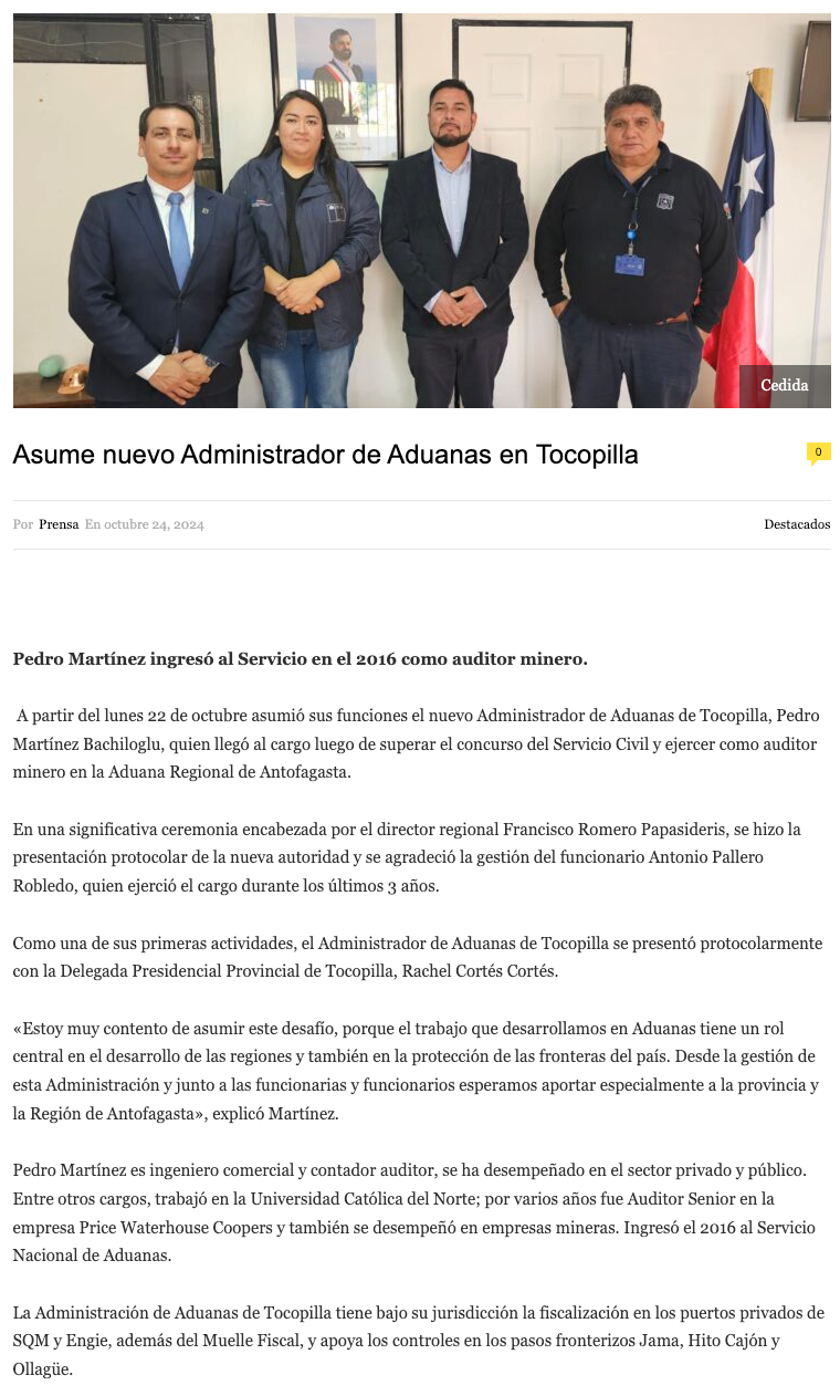 Asume nuevo Administrador de Aduanas en Tocopilla - (fm7.cl)