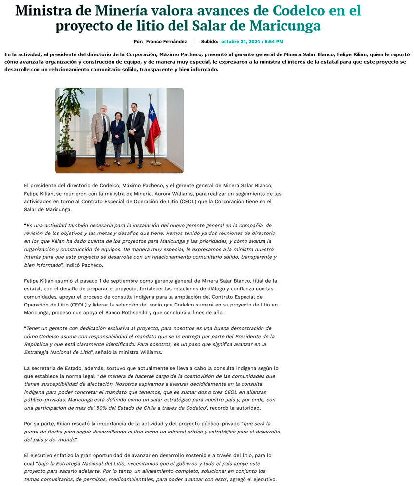 Máximo Pacheco retoma actividades y presenta a gerente general de proyecto en Salar de Maricunga - (DF Online)