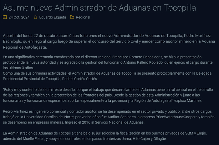 Asume nuevo Administrador de Aduanas en Tocopilla - (maritimoportuario)