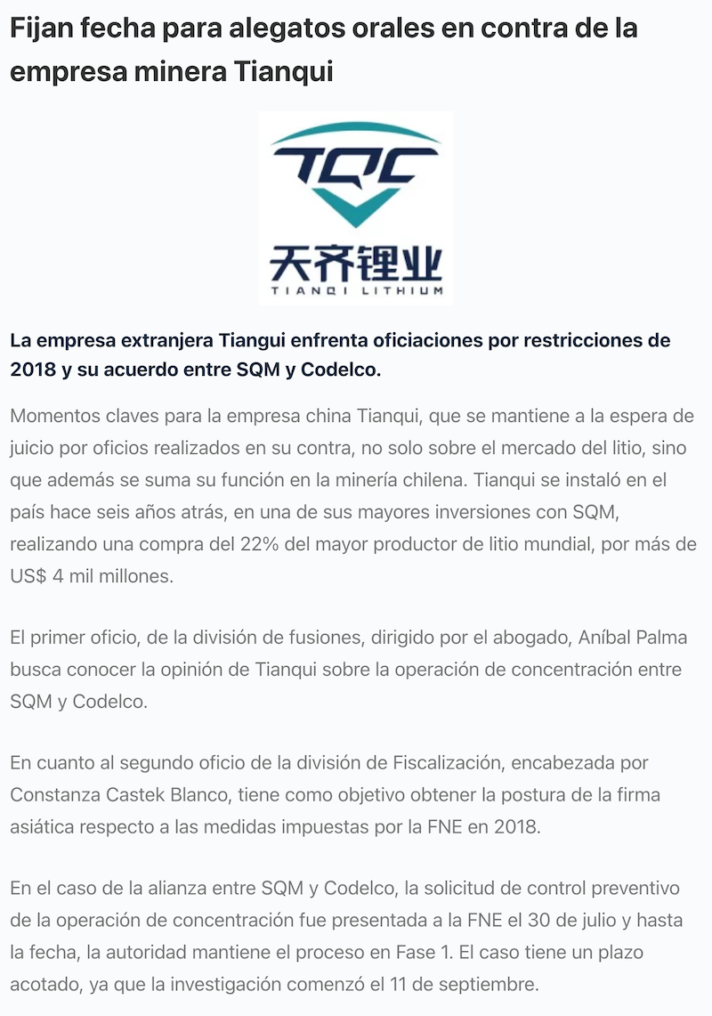 Etapa clave del conflicto de Tianqi contra la CMF ya tiene fecha: Corte fijó día para alegatos orales - (El Chañarcillo)
