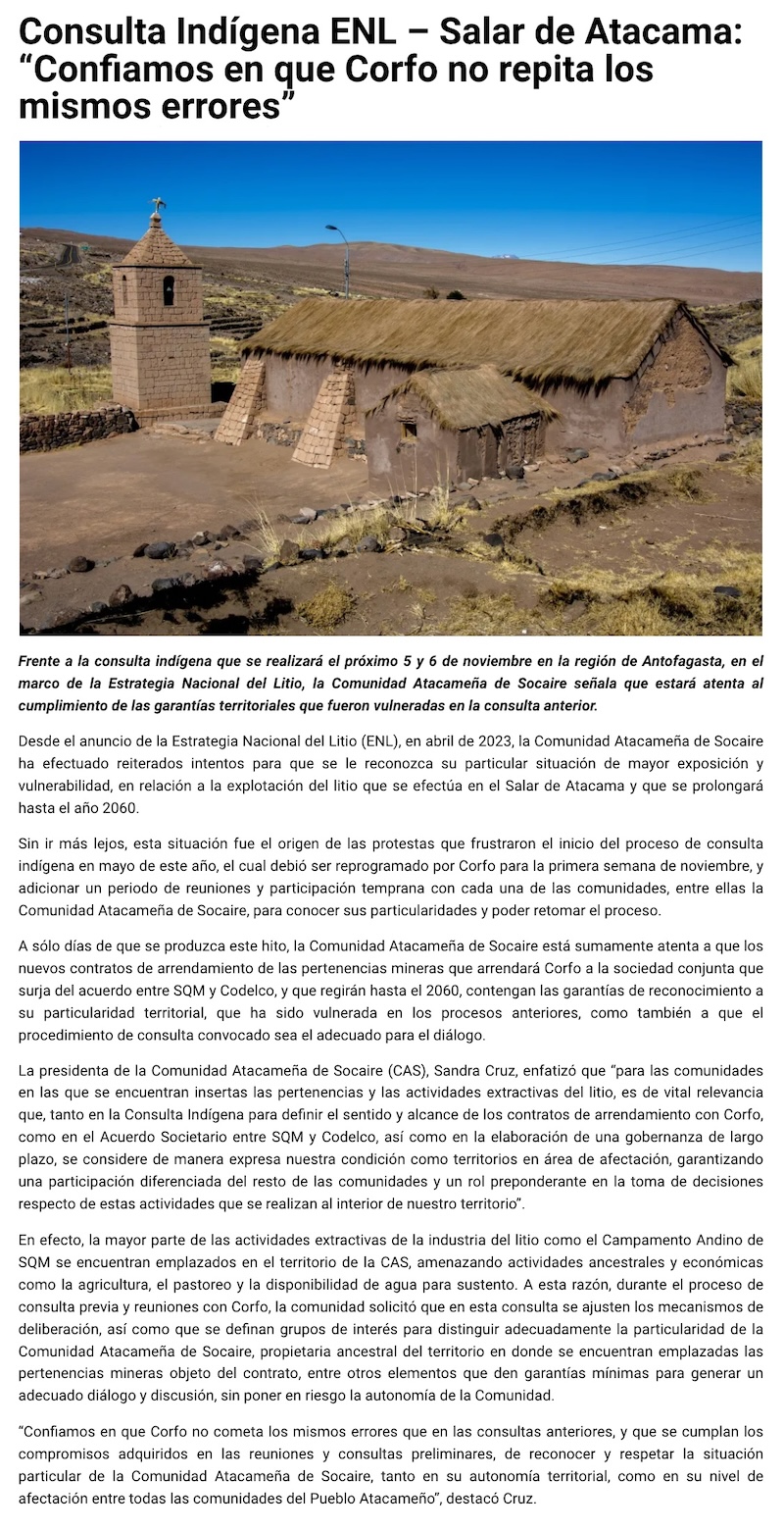 Consulta Indígena ENL – Salar de Atacama: “Confiamos en que Corfo no repita los mismos errores” - (g5noticias.cl)