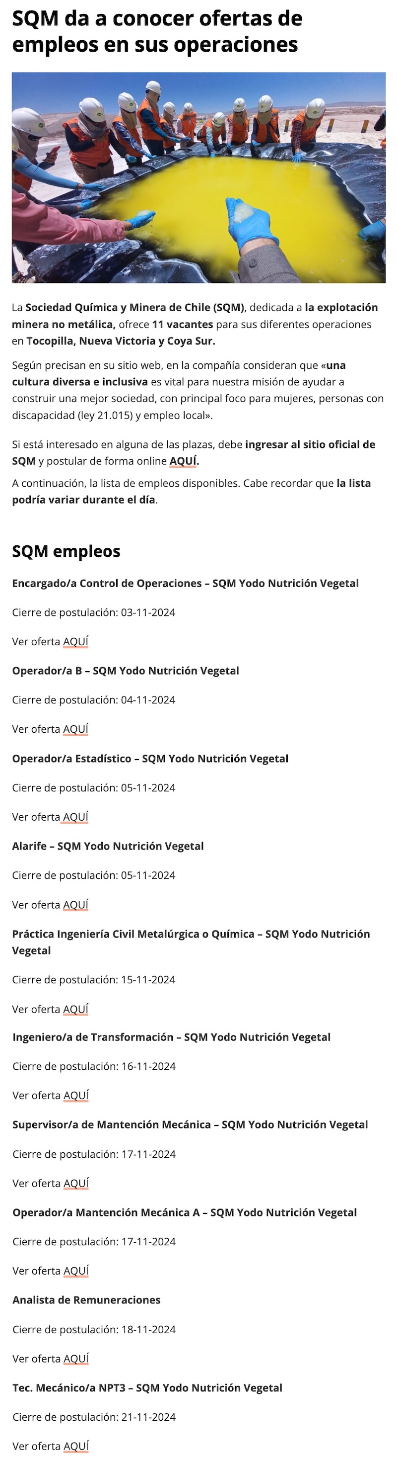¿Quieres trabajar en una minera no metálica? Estas son las vacantes de empleo en SQM, en Chile - (terra.cl)
