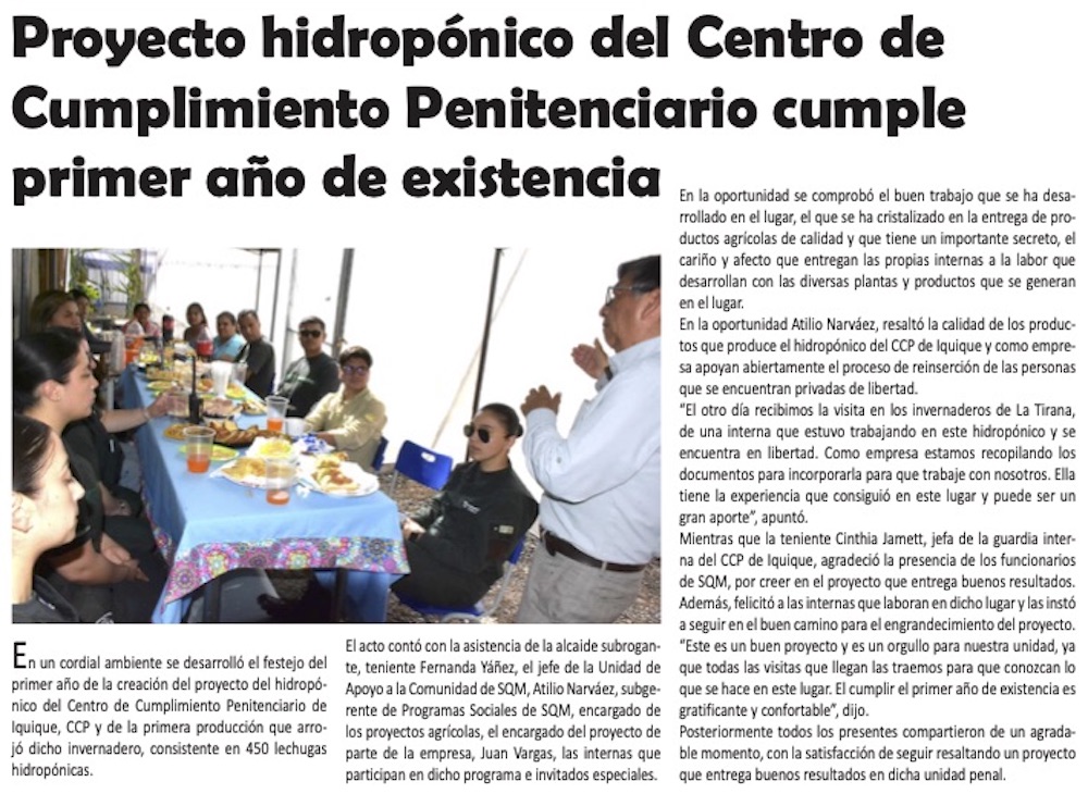 Proyecto hidropónico del Centro Penitenciario de Iquique cumplió su primer año logrando una producción de 450 lechugas bajo esa modalidad - (edicioncero)