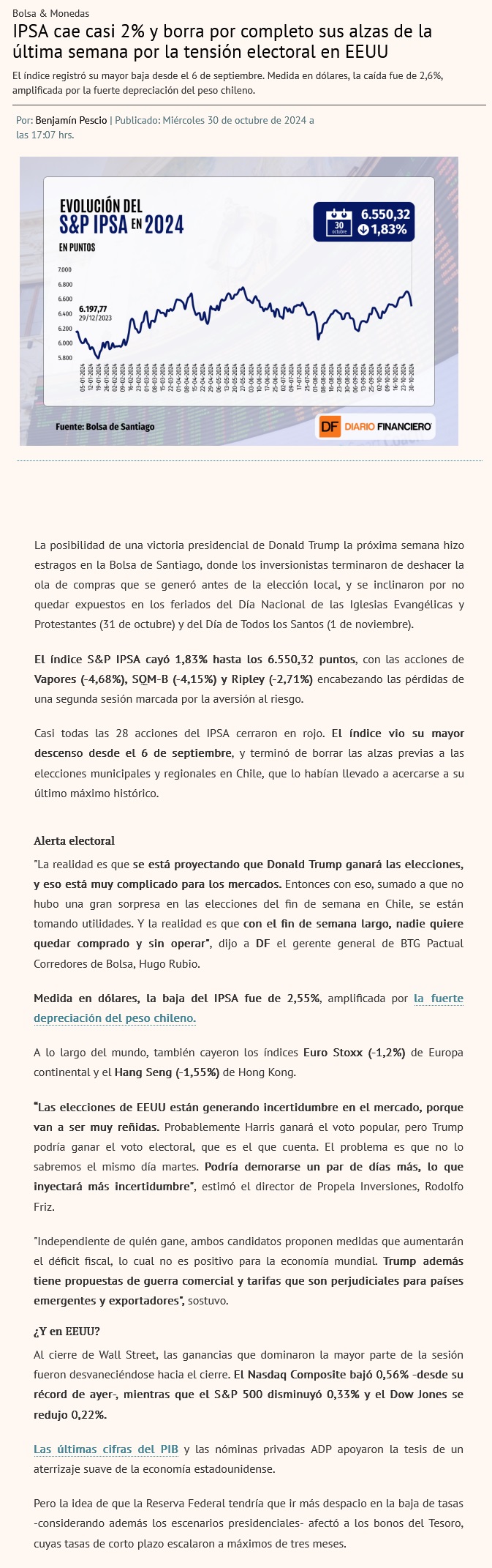 Las acciones del IPSA que más dependen del “efecto Trump” - (El Mercurio de Santiago)