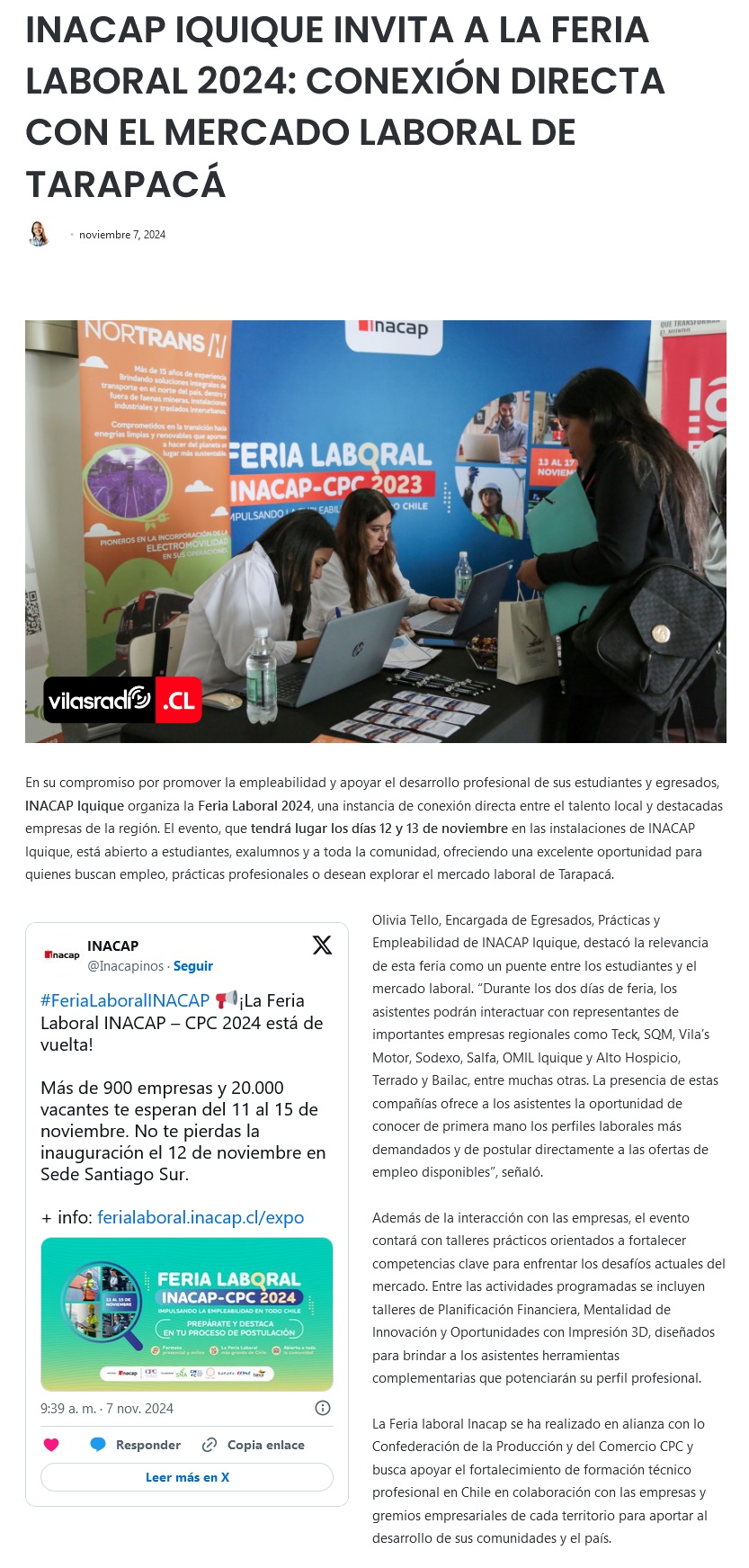 INACAP Iquique invita a la Feria Laboral 2024: Conexión directa con el mercado laboral de Tarapacá - (elreporterodeiquique)
