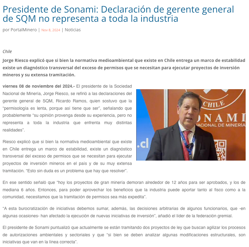 Presidente de Sonami: “Declaración de gerente general de SQM no representa a toda la industria - (guiaminera.cl)