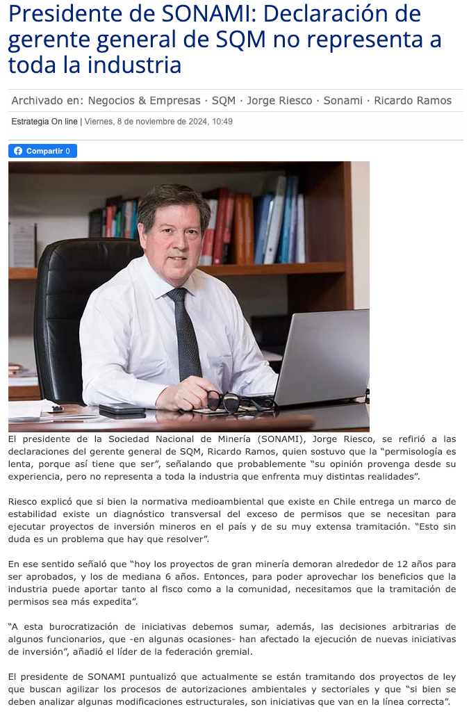 Gremio minero se distancia de SQM por dichos sobre "permisología": "No representa a toda la industria" - (El Chañarcillo)