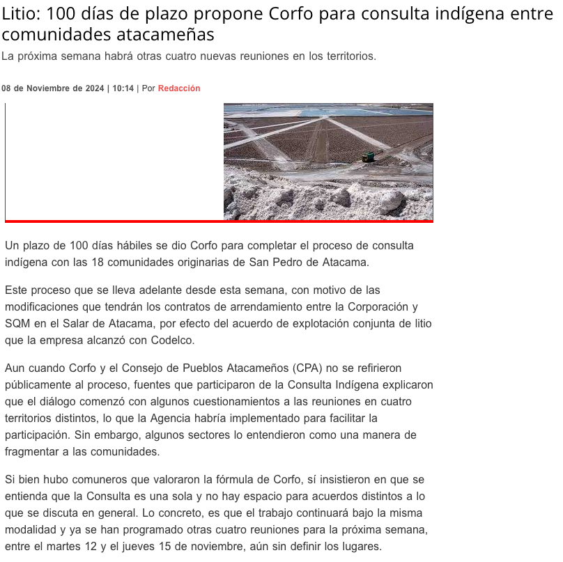 Descontento de comunidad indígena por consulta de Codelco y SQM - (redimin)