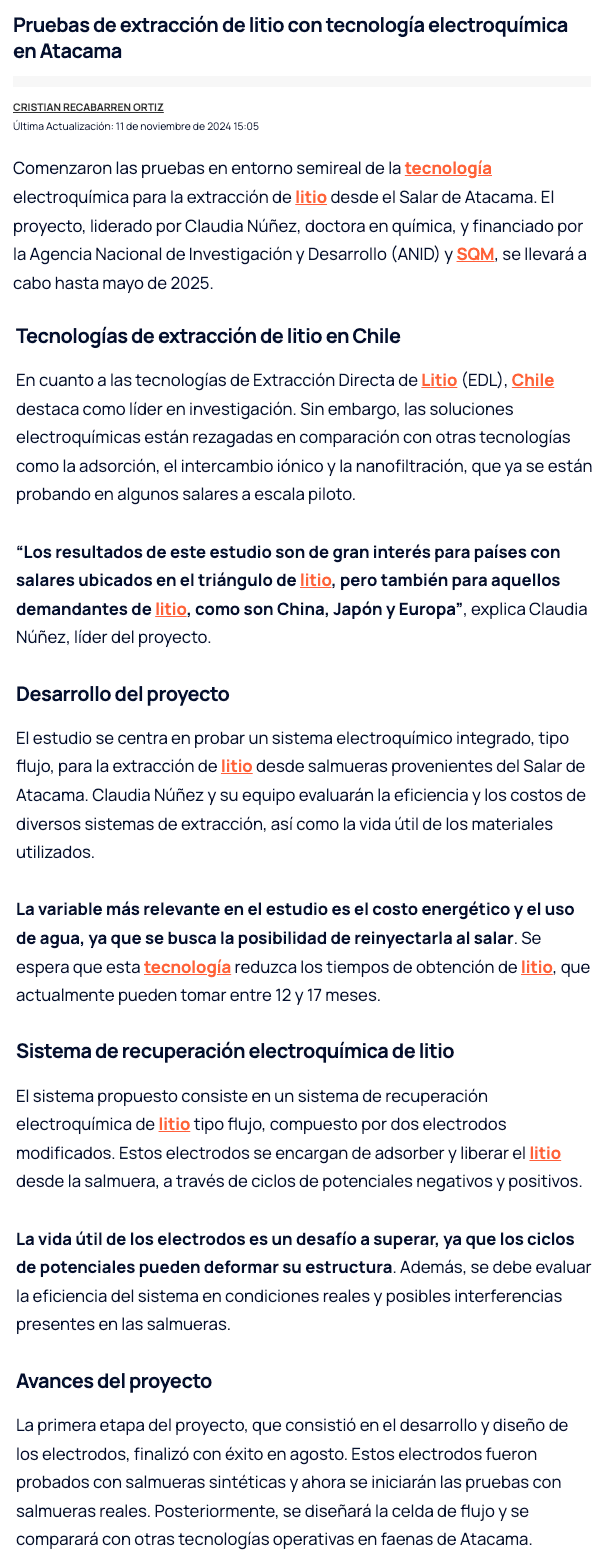 Parten pruebas en ambiente semireal para la extracción electroquímica de litio desde el Salar de Atacama - (portalinnova.cl)