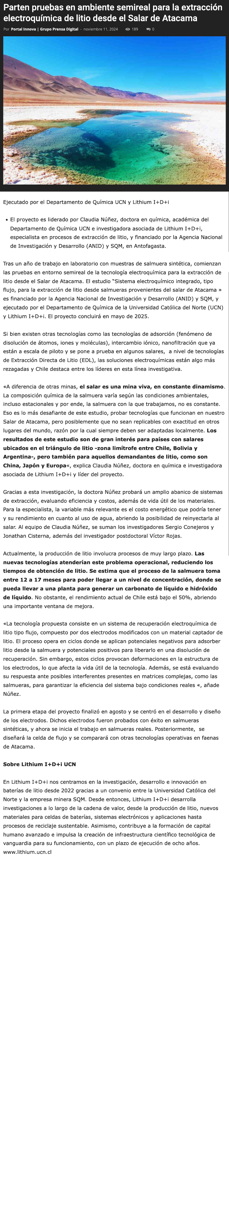 Pruebas de extracción de litio con tecnología electroquímica en Atacama - (redimin)