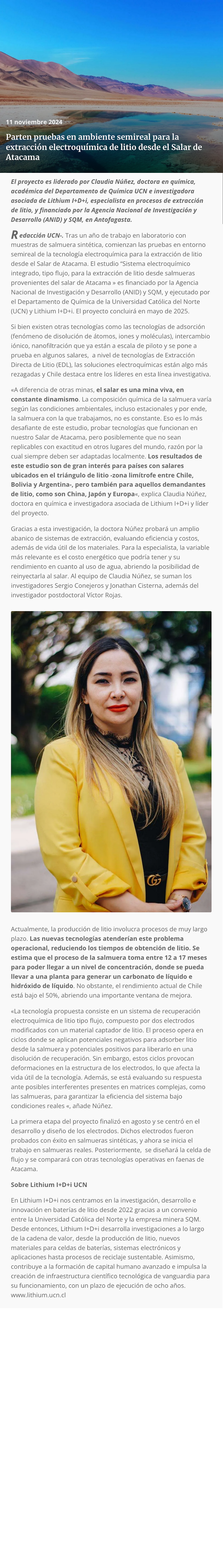 Parten pruebas en ambiente semireal para la extracción electroquímica de litio desde el Salar de Atacama - (portalinnova.cl)