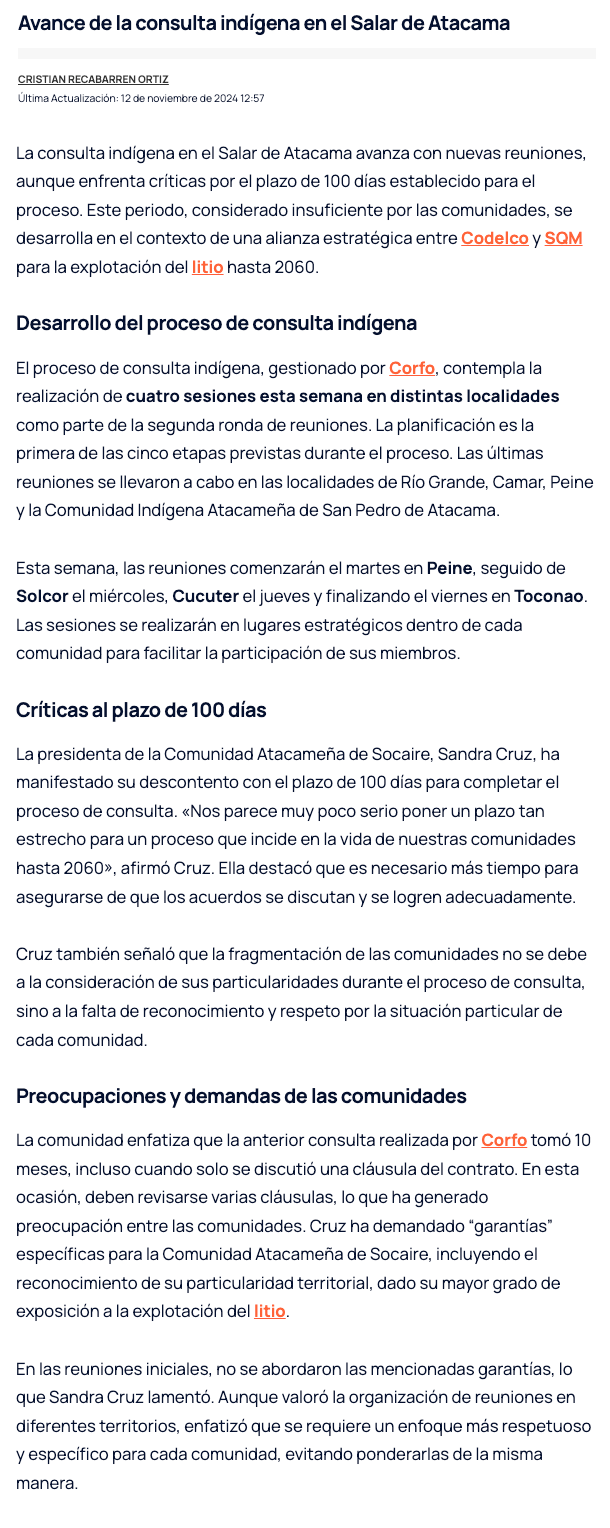 Consulta indígena en el salar de Atacama suma nuevas reuniones en medio de críticas por plazo de 100 días para el proceso - (La Tercera Online)