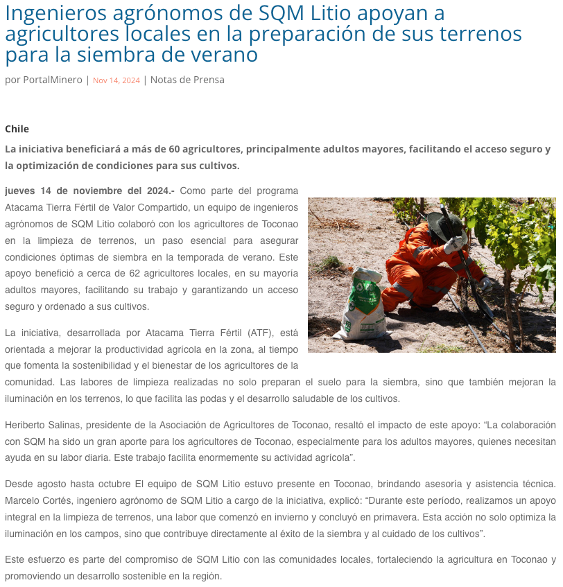 Ingenieros agrónomos de SQM apoyan a agricultores locales - (reporteminero)
