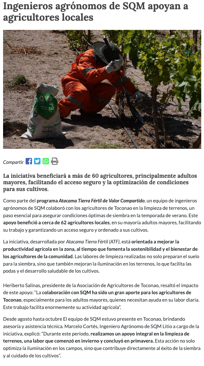 Ingenieros agrónomos de SQM Litio apoyan a agricultores locales en la preparación de sus terrenos para la siembra de verano - (portalminero)
