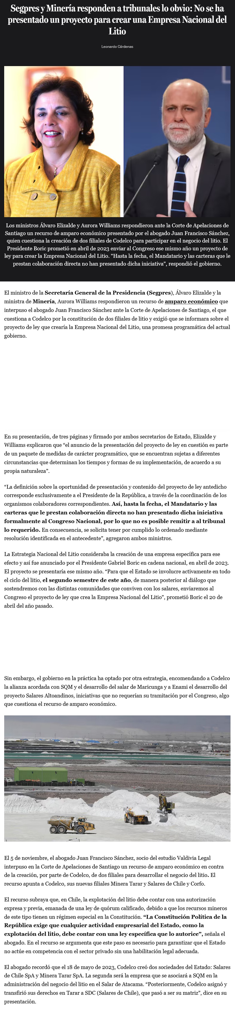Segpres y Minería responden a tribunales lo obvio: No se ha presentado un proyecto para crear una Empresa Nacional del Litio - (Pulso)