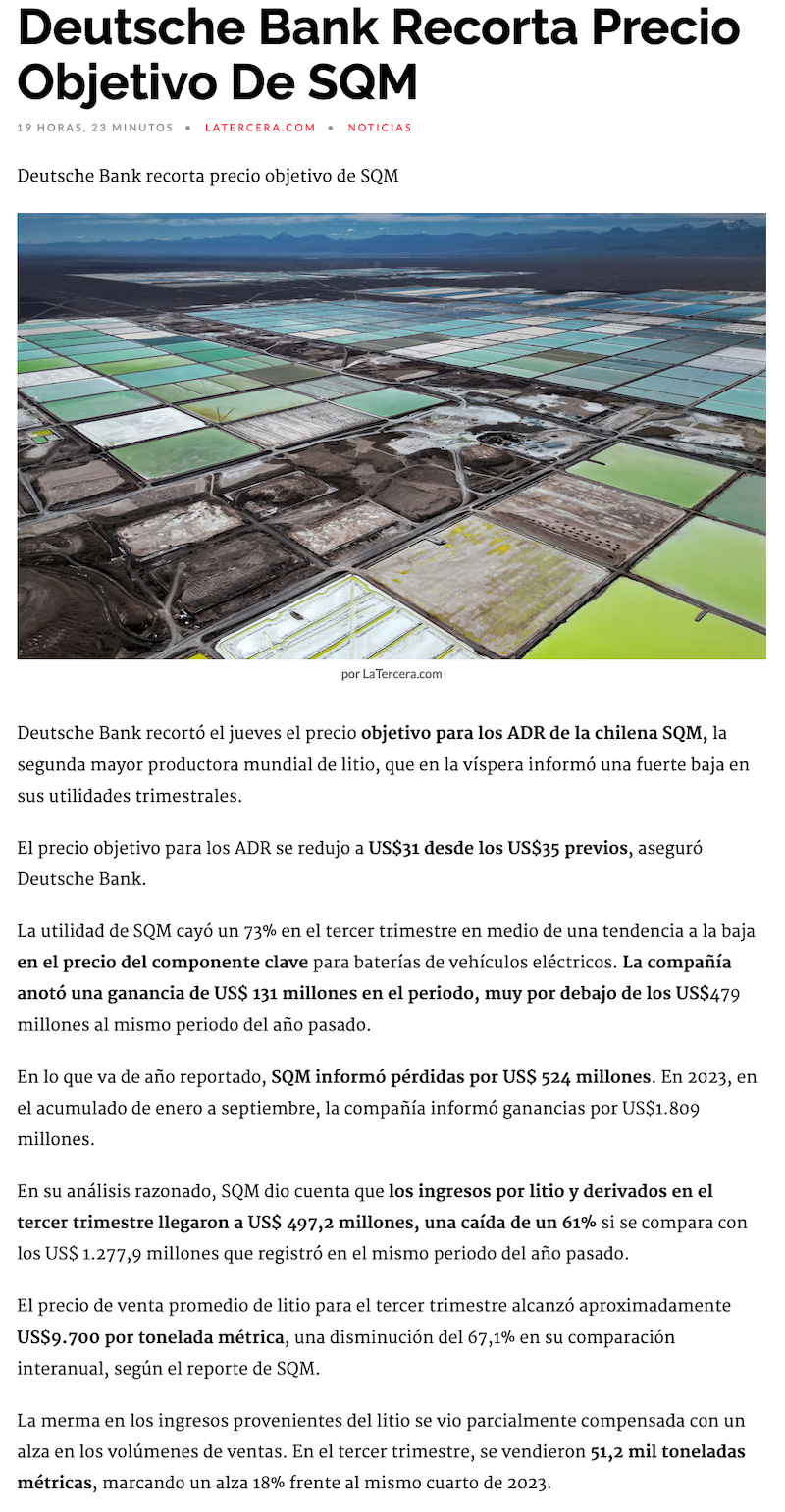 Deutsche Bank recorta precio objetivo de SQM - (La Tercera Online)