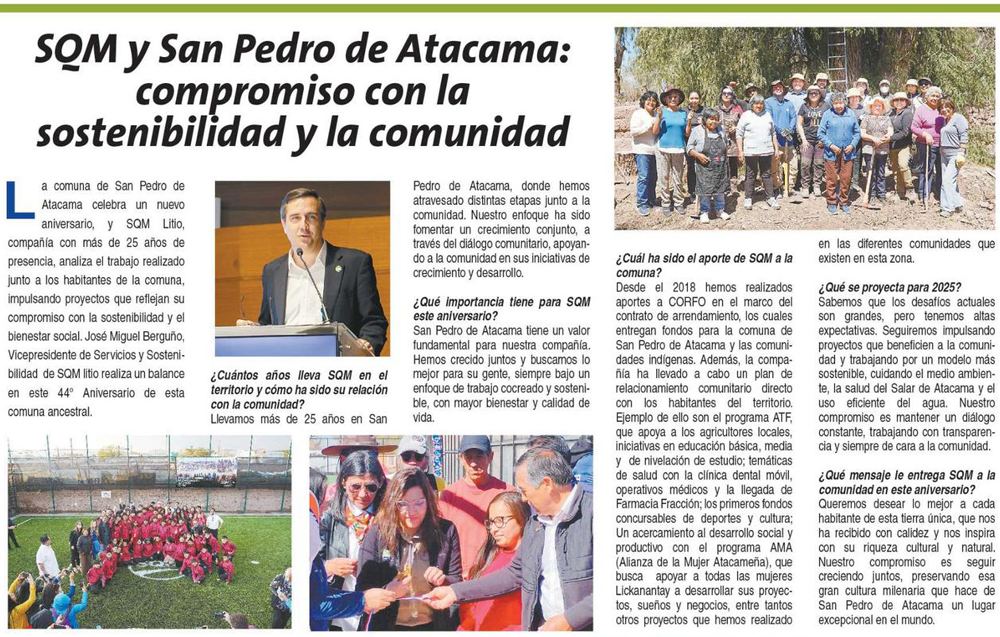 SQM y San Pedro de Atacama: compromiso con la sostenibilidad y la comunidad - (El Mercurio de Antofagasta)