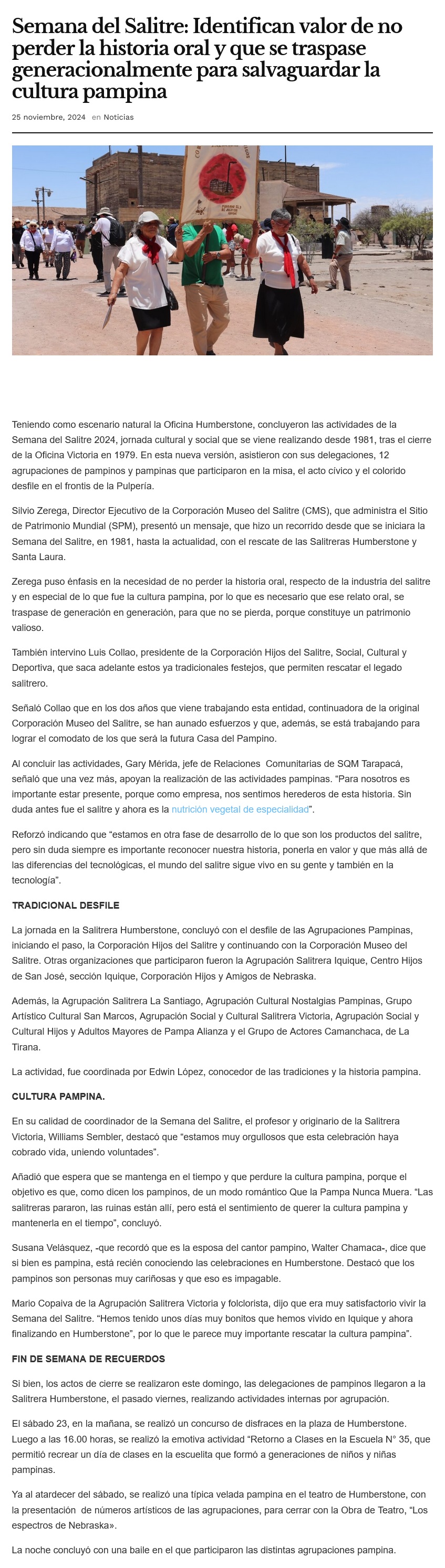 Semana del Salitre: Identifican valor de no perder la historia oral y que se traspase generacionalmente para salvaguardar la cultura pampina - (ceinoticias.cl)