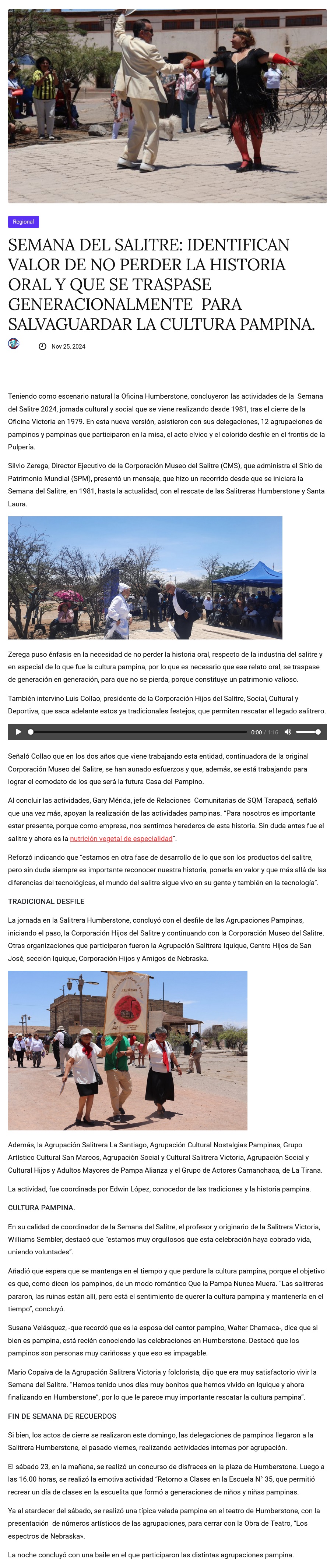 Semana del Salitre: Identifican valor de no perder la historia oral y que se traspase generacionalmente para salvaguardar la cultura pampina - (vilasradio.cl)