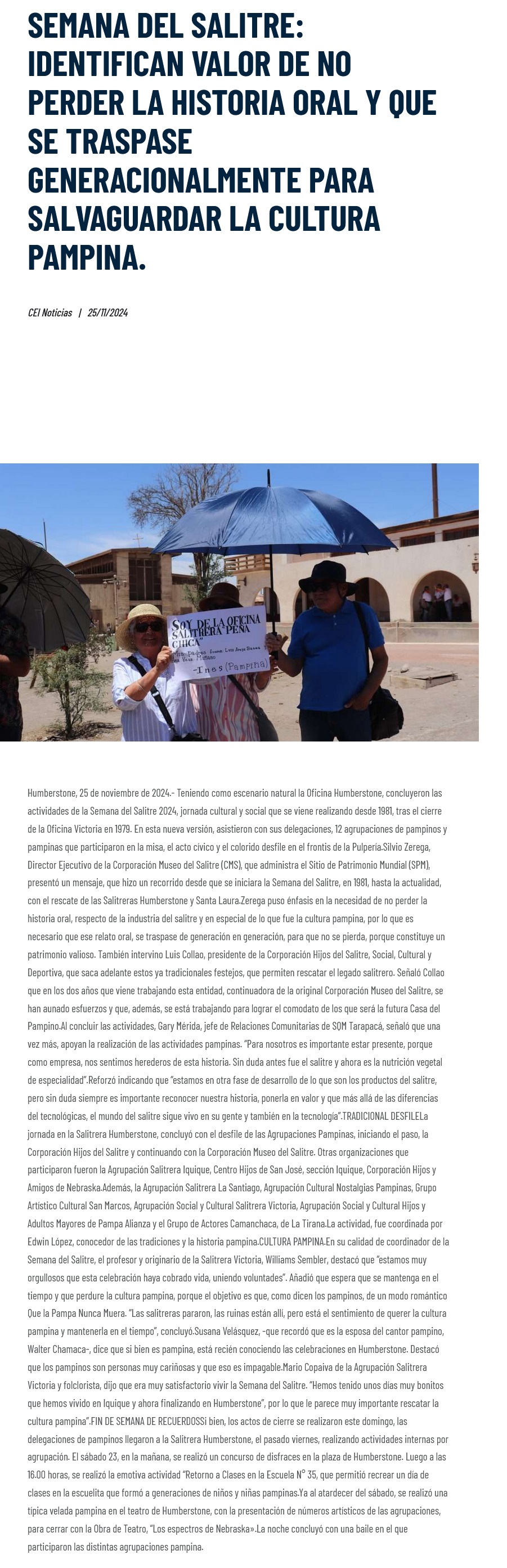 Semana del Salitre: Identifican valor de no perder la historia oral y que se traspase generacionalmente para salvaguardar la cultura pampina - (vilasradio.cl)