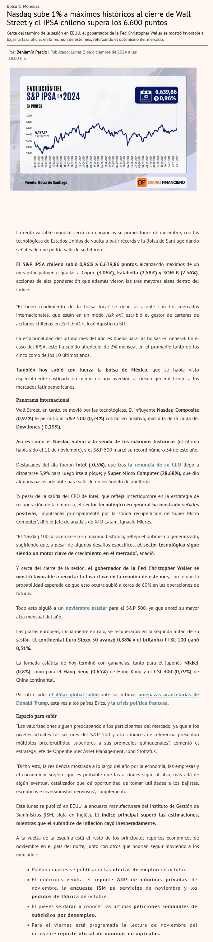 Nasdaq trepa a nuevo récord y el IPSA cierra sobre los 6.600 puntos - (La Tercera Online)