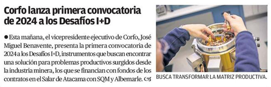 Corfo lanza primera convocatoria de 2024 a los Desafíos I+D - (El Mercurio de Antofagasta)