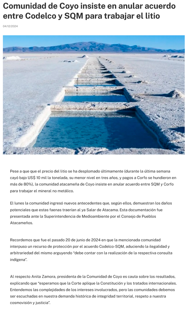 Comunidad atacameña apelará ante la Corte Suprema el fallo que descartó ilegalidad en el acuerdo entre Codelco y SQM - (timeline)