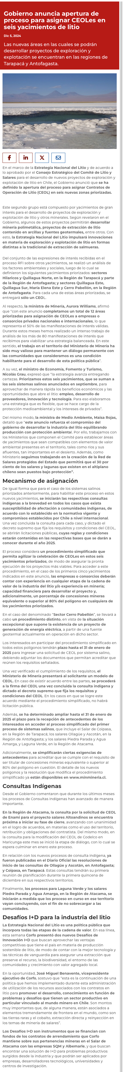 Estrategia Nacional del Litio: Anuncian apertura de proceso para asignar CEOLes en seis yacimientos de litio - (portalminero)