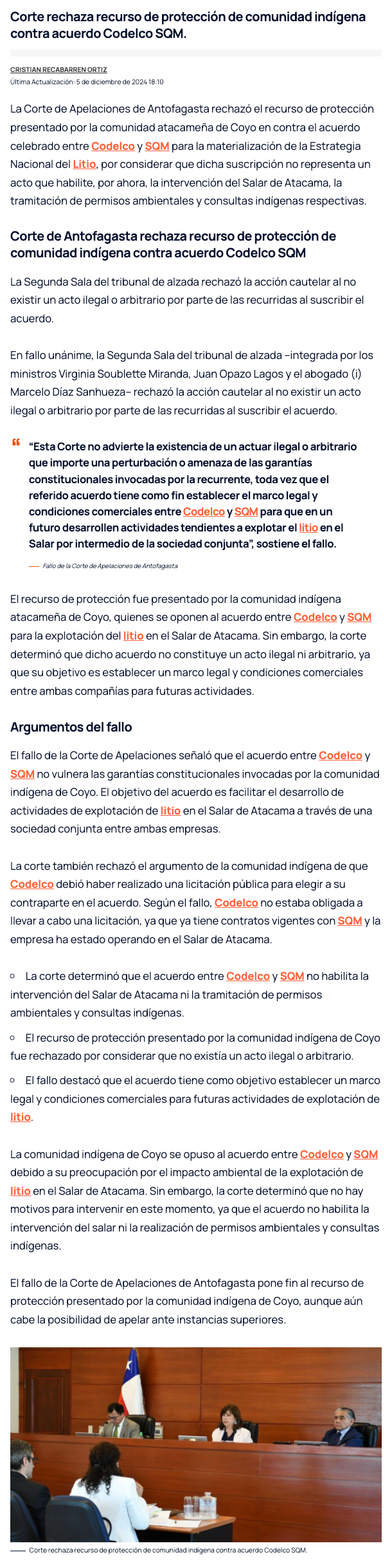 Corte rechaza recurso de comunidad Coyo en contra de acuerdo Codelco-SQM - (terram.cl)