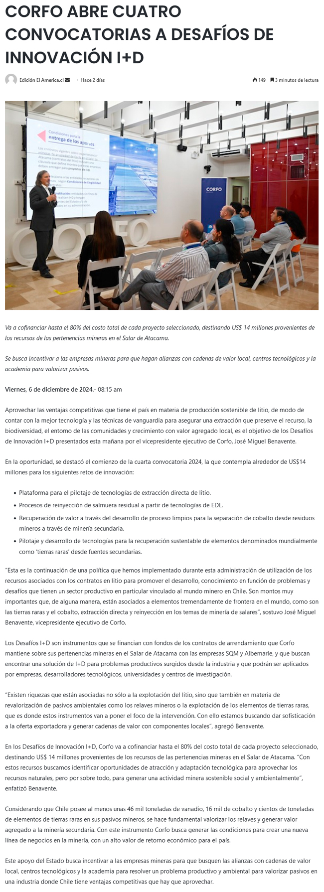 Corfo abre cuatro convocatorias a Desafíos de Innovación I+D - (El Mercurio de Antofagasta)