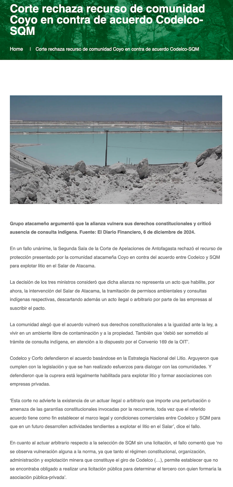 Litio: Corte rechaza recurso de protección de comunidad de Coyo - (gmnews)
