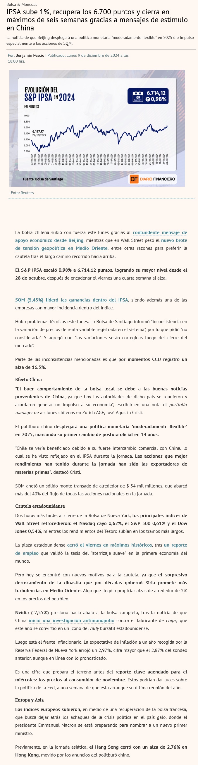 Frenesí por SQM lleva al IPSA a superar los 6.700 puntos - (El Mercurio de Santiago)