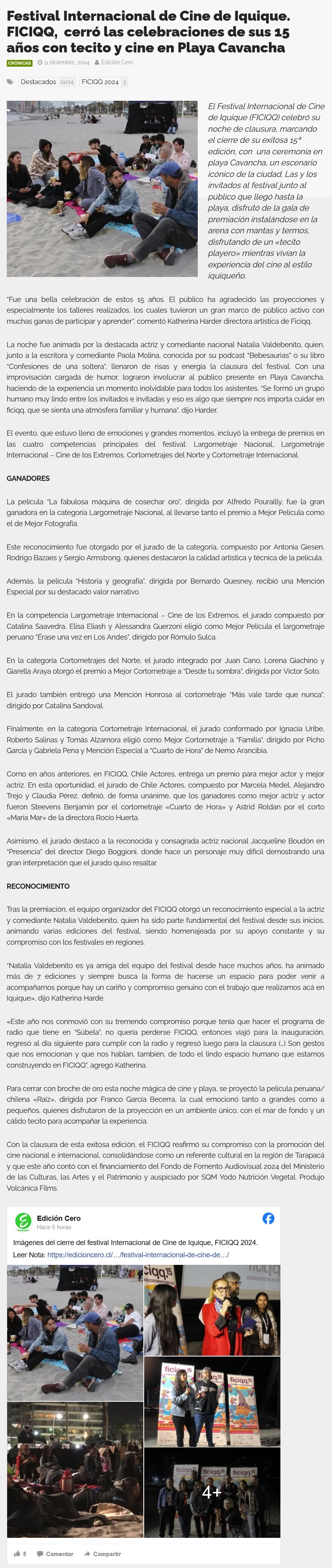 Festival Internacional de Cine de Iquique cerró celebraciones de sus 15 años con tecito y cine en Cavancha - (elsoldeiquique)
