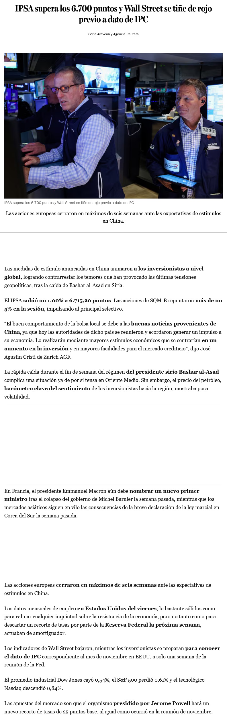 IPSA sube 1%, recupera los 6.700 puntos y cierra en máximos de seis semanas gracias a mensaje de estímulo en China - (DF Online)