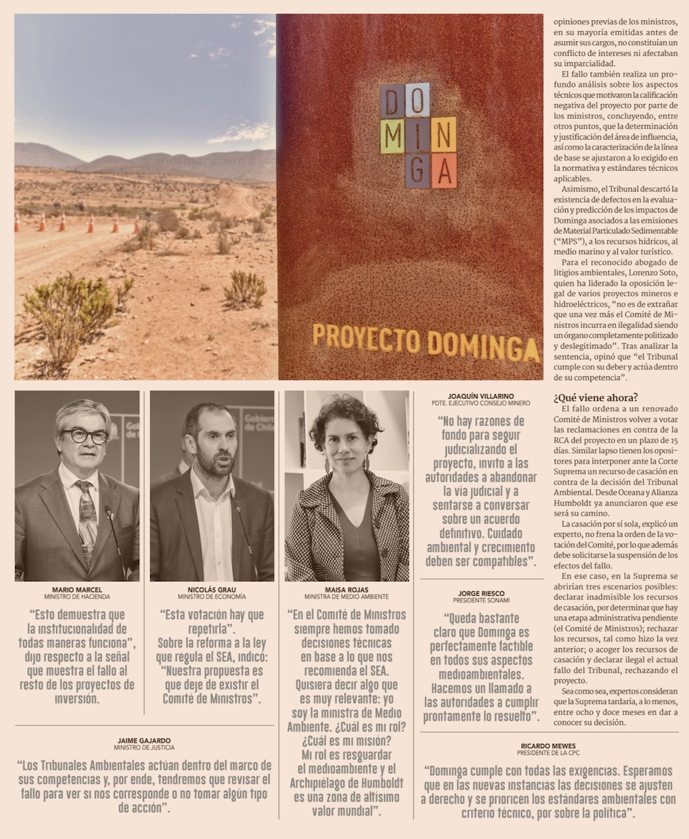 Dominga: Nueva votación del Comité de Ministros se podría aplazar hasta el próximo gobierno - (El Mercurio de Santiago)