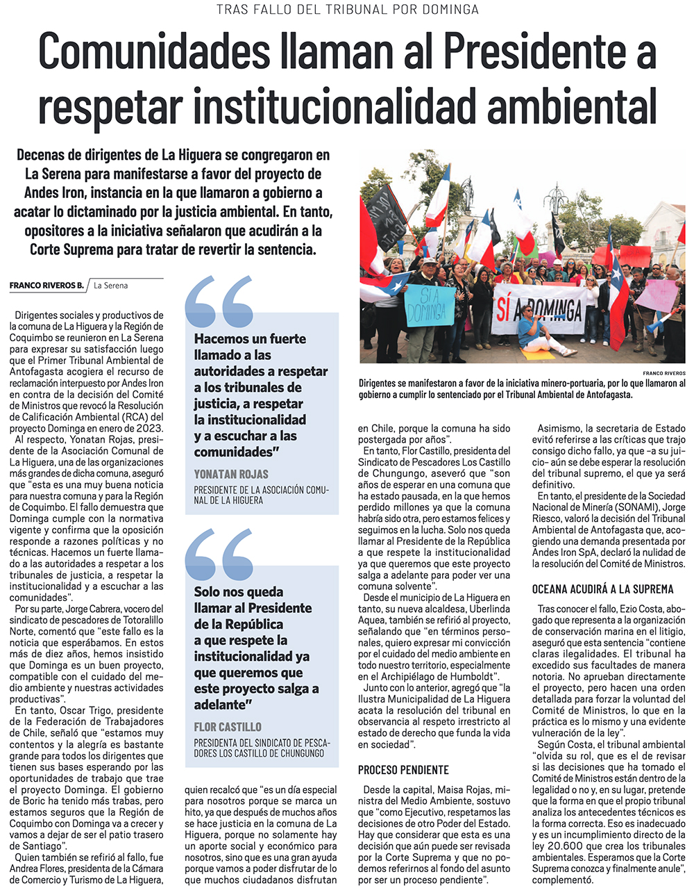 Organizaciones acusan que Tribunal Ambiental de Antofagasta «excedió sus atribuciones» en fallo que favorece a minera Dominga - (regionalista.cl)