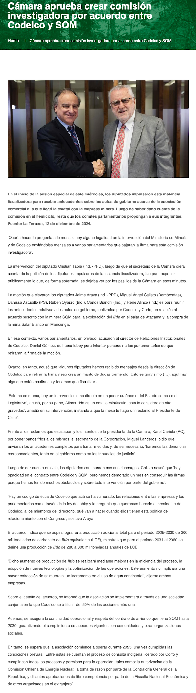 Cámara aprueba comisión investigadora del acuerdo Codelco-SQM - (soyantofagasta)