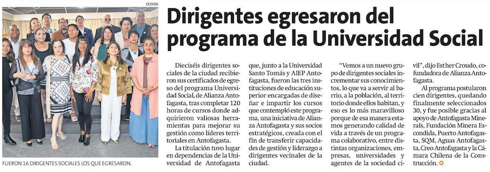 Dieciséis dirigentes egresaron de la 2a generación del programa Universidad Social de Alianza Antofagasta - (regionesnoticias.cl)