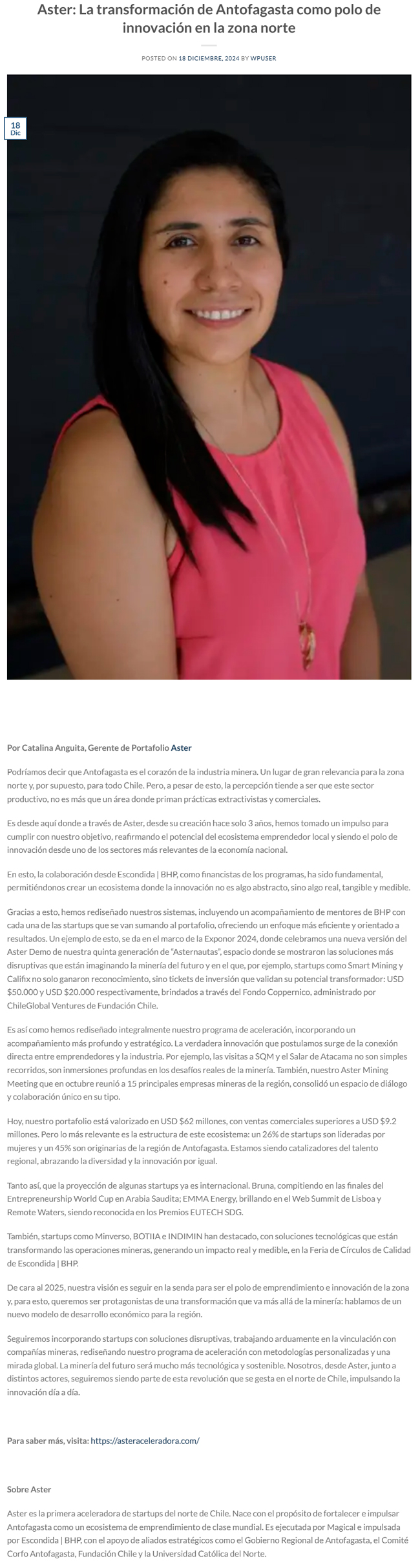 Aster: La transformación de Antofagasta como polo de innovación en la zona norte - (portalinnova.cl)