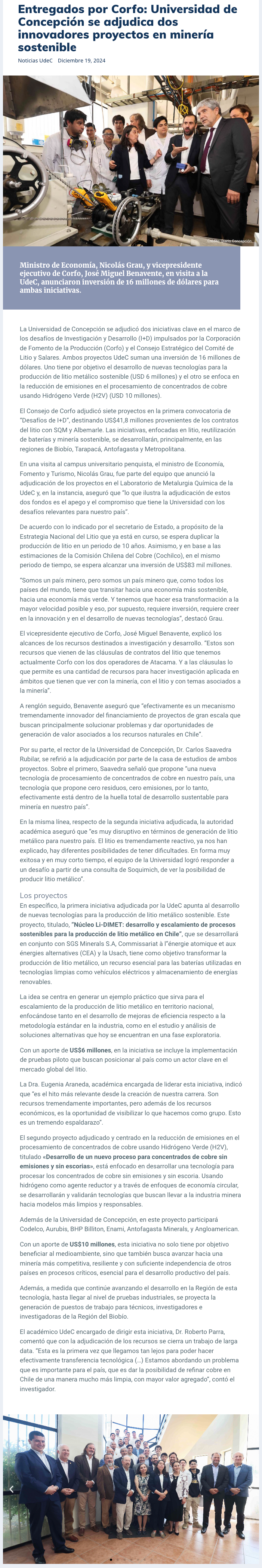 Adjudicación de proyectos en metalurgia química UdeC - (TVU)