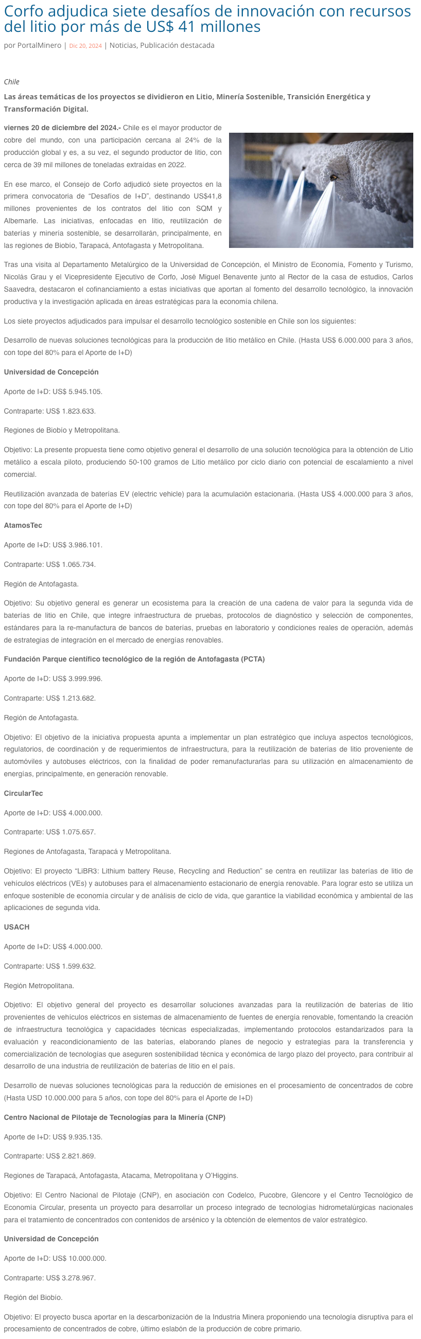 Corfo invierte US$41,8 millones en 7 proyectos de I+D para impulsar tecnologías sostenibles en Chile - (redimin)