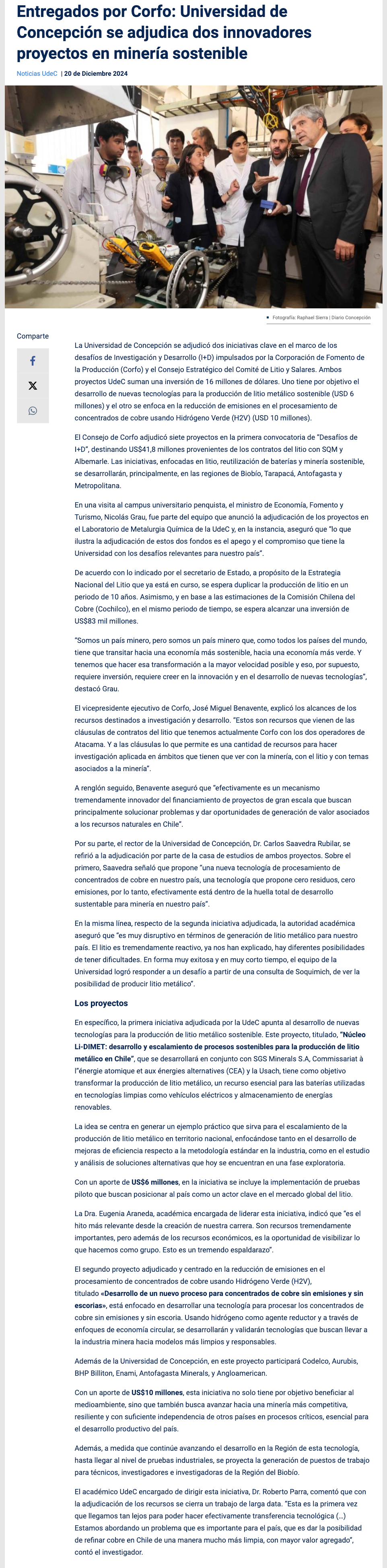 Universidad de Concepción se adjudica dos innovadores proyectos en minería sostenible - (La Discusión)