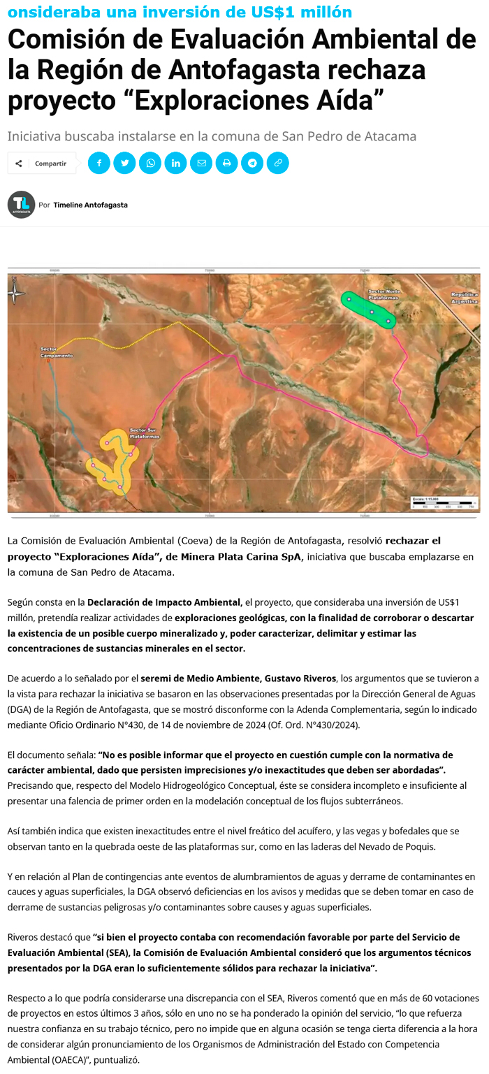 COEVA rechaza exploraciones mineras AIDA en las cercanías del Salar de Tara - (El Mercurio de Antofagasta)