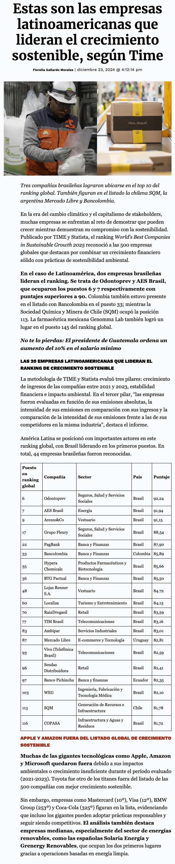 Estas son las empresas latinoamericanas que lideran el crecimiento sostenible, según Time - (forbes.cl)